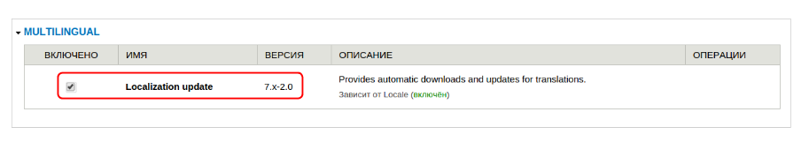После каждого обновления проверяйте, актуальны ли языковые настройки. Перейдите в “Конфигурация” → “Регион и язык” → “Перевод интерфейса” → “Обновить”. Если этой кнопки нет, установите модуль Localization update. Его вы найдете на официальном сайте Drupal: