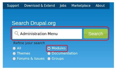 Зайдите на официальный сайт Drupal и через поиск найдите нужный модуль/тему/форум и т.д.: